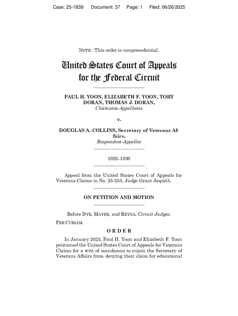Get the free Yoon v. Collins - U.S. Court of Appeals, Federal Circuit