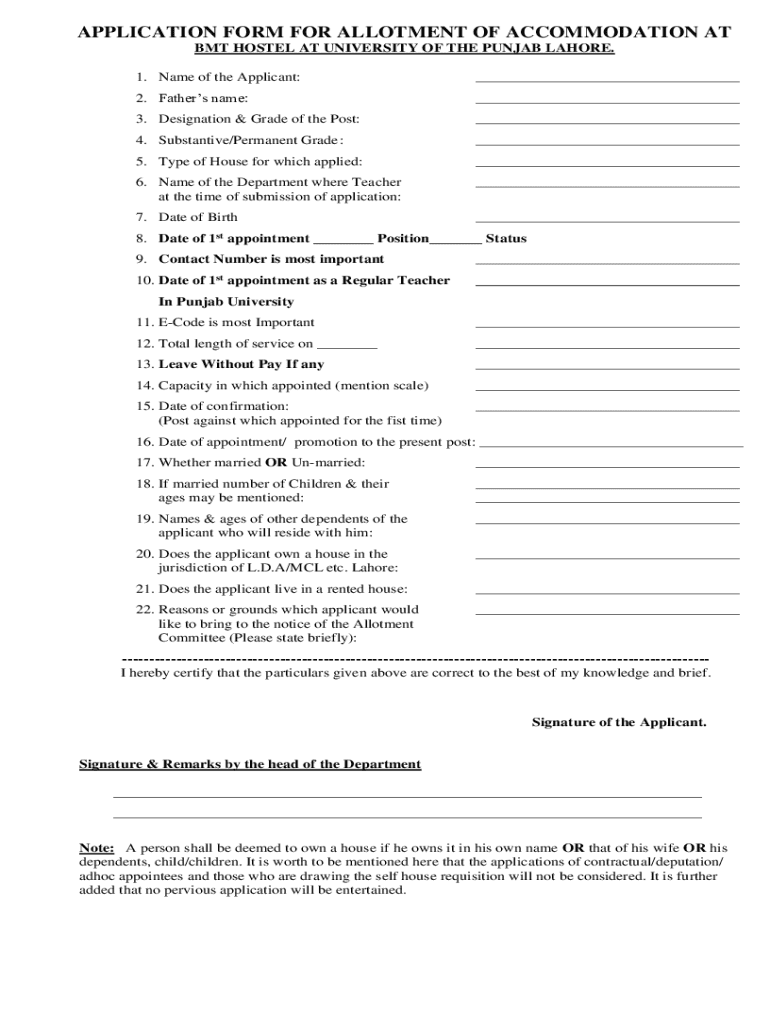 Get the free Application Form for Allotment of Accommodation at Bmt Hostel at University of the P...
