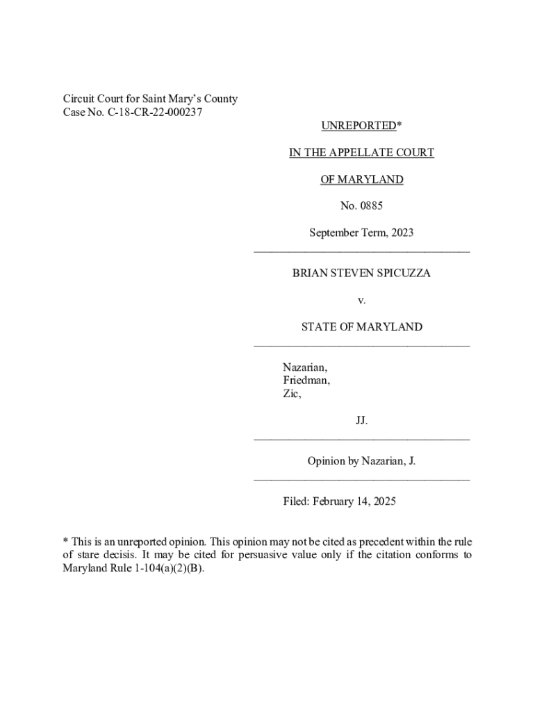 Get the free BRIAN STEVEN SPICUZZA v. STATE OF MARYLAND