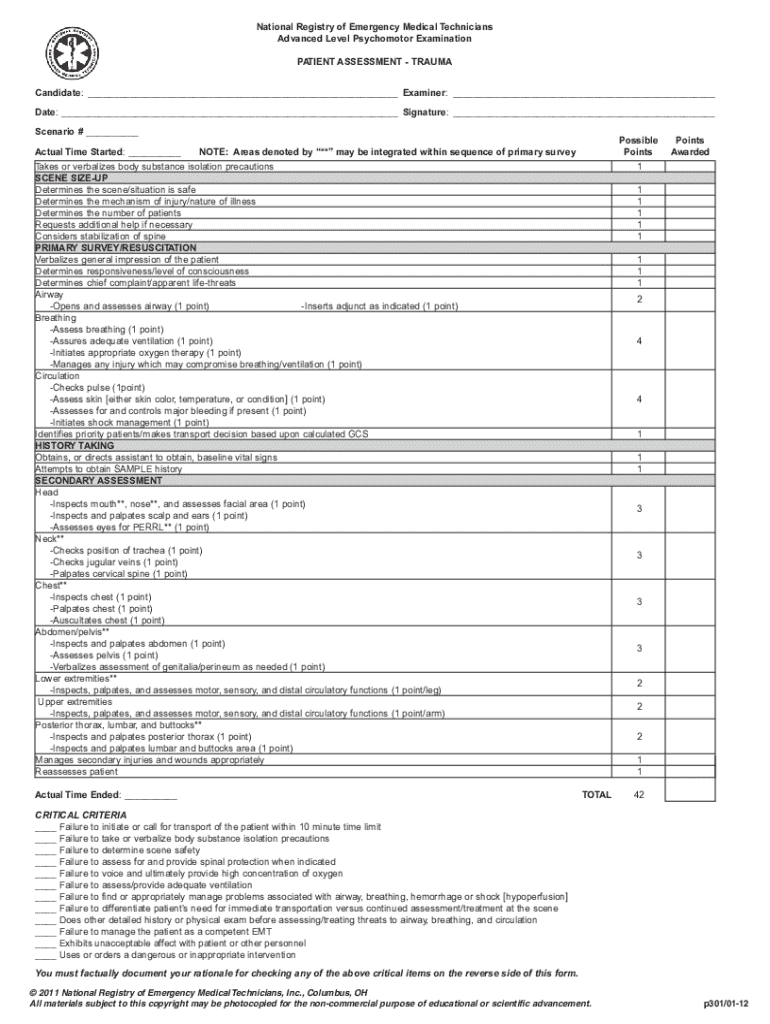 Get the free National Registry of Emergency Medical Technicians Advanced Level Psychomotor Examin...