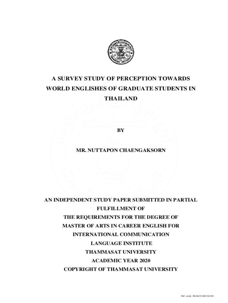 Get the free a Survey Study of Perception Towards World Englishes of Graduate Students in Thailand