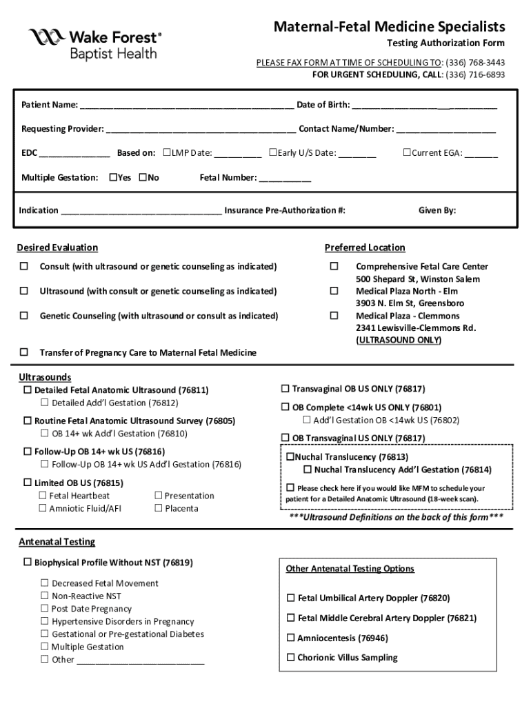 Get the free Testing Authorization Form