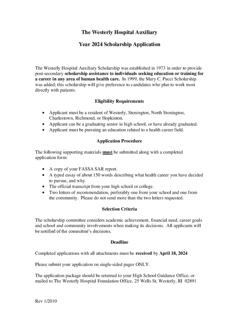 Westerly Hospital Auxiliary Scholarship Form: A Comprehensive Guide