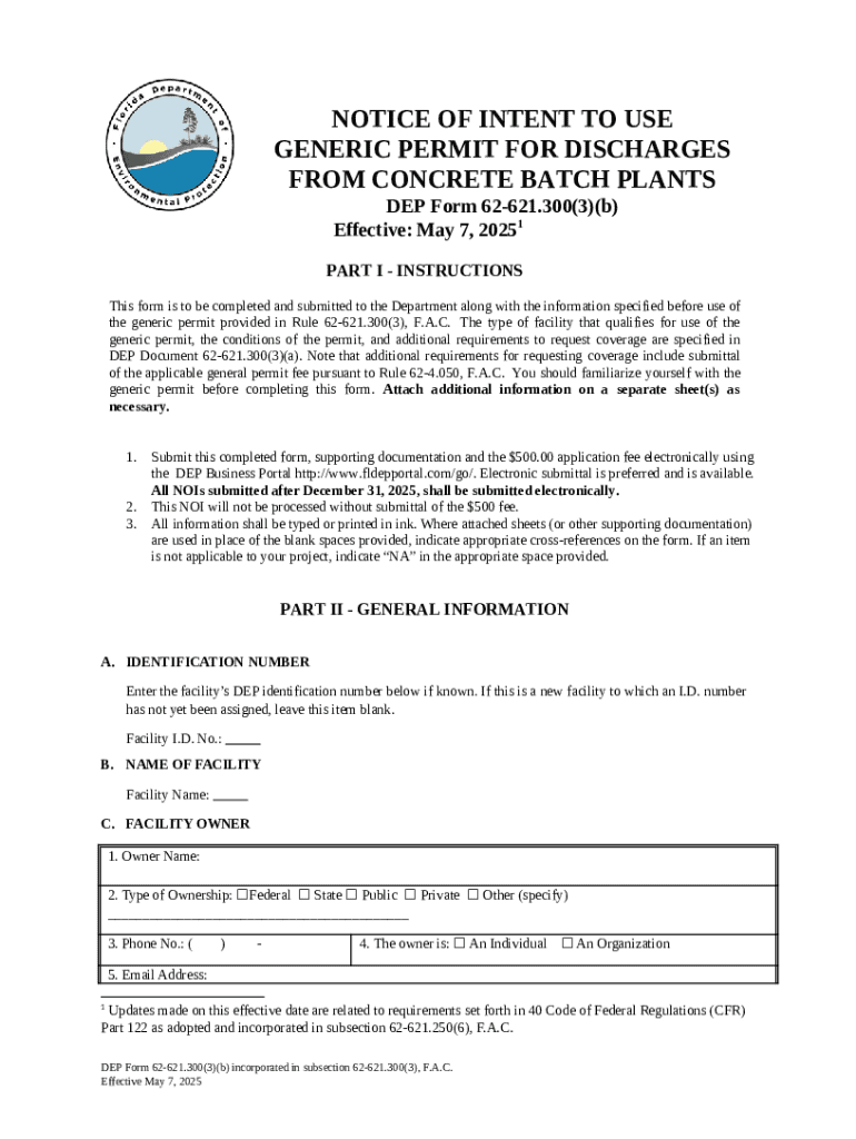 Frequently asked questions about Notice of Intent to Use Generic Permit for Discharges From Concrete Batch Plants template