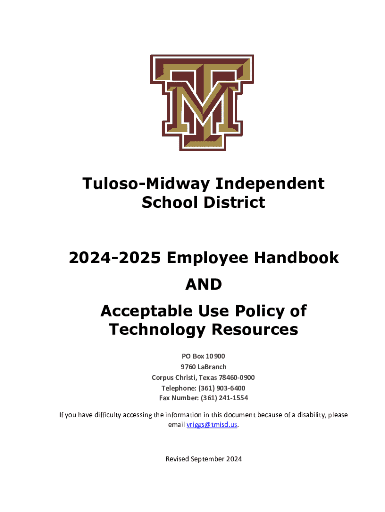 Get the free Tuloso-midway Independent School District 2024-2025 Employee Handbook