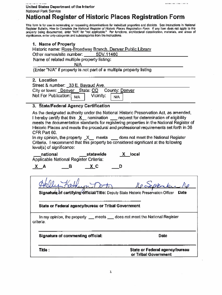 Get the free National Register of Historic Places Registration Form