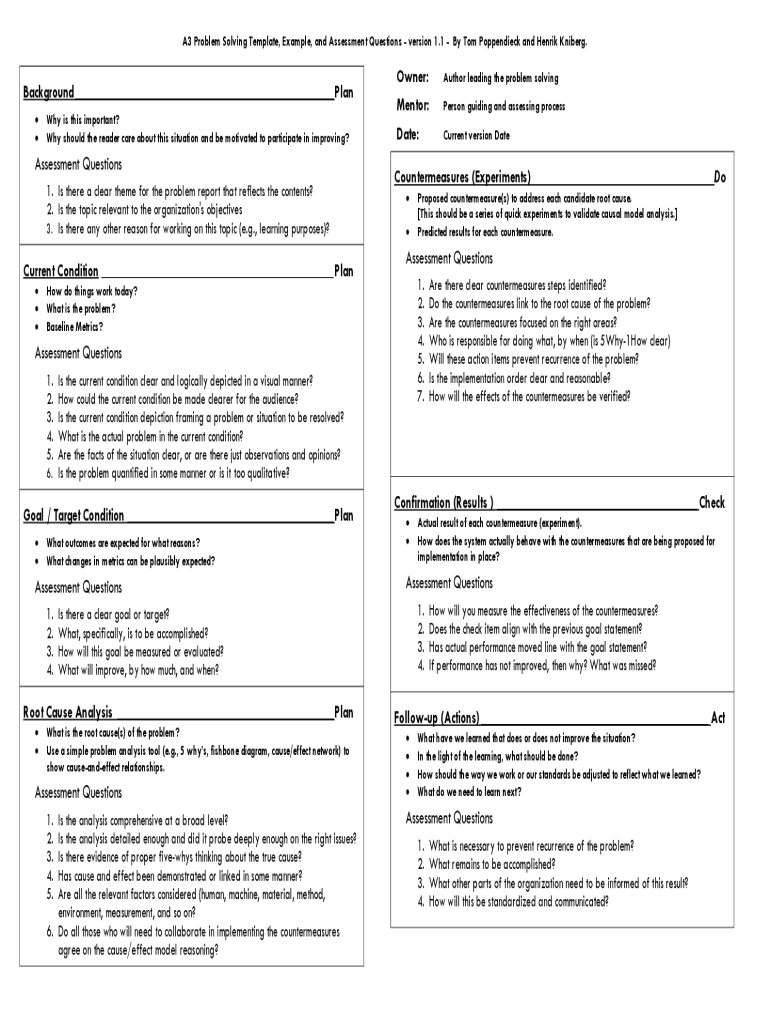 Get the free A3 Problem Solving Template, Example, and Assessment Questions