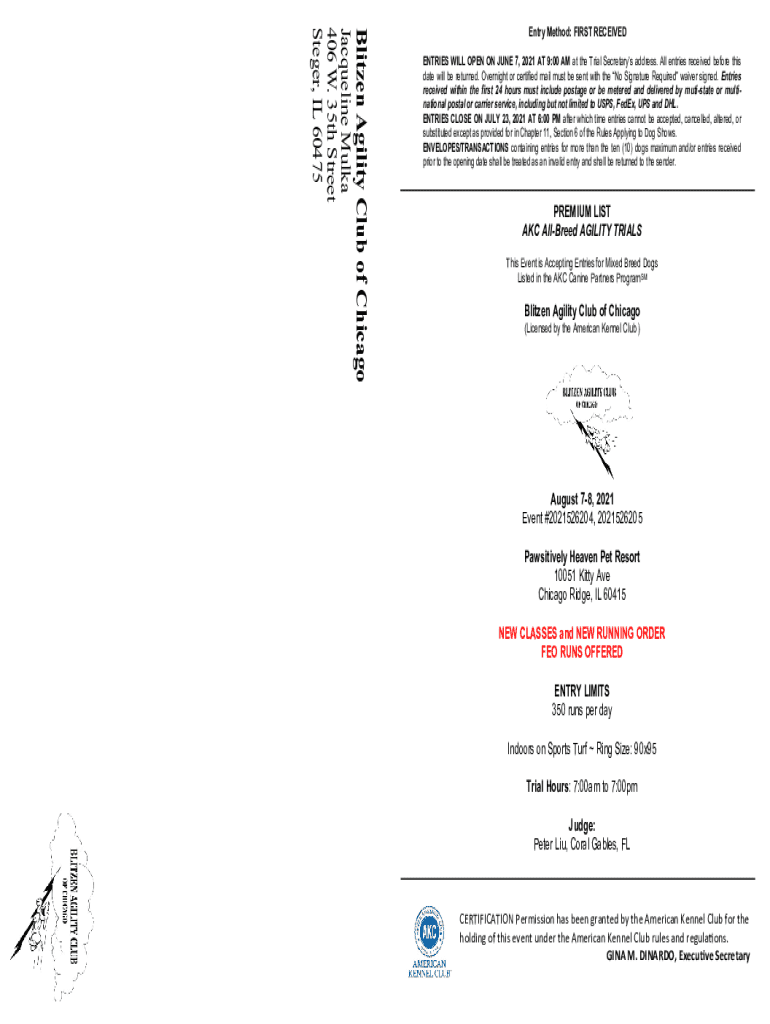 Get the free Blitzen Agility Club of Chicago - Dog Show Premiums