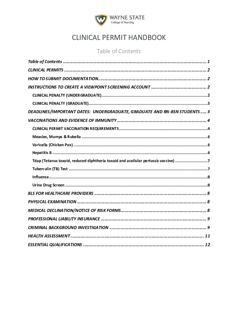 Get the free Clinical Permit Handbook - nursing wayne