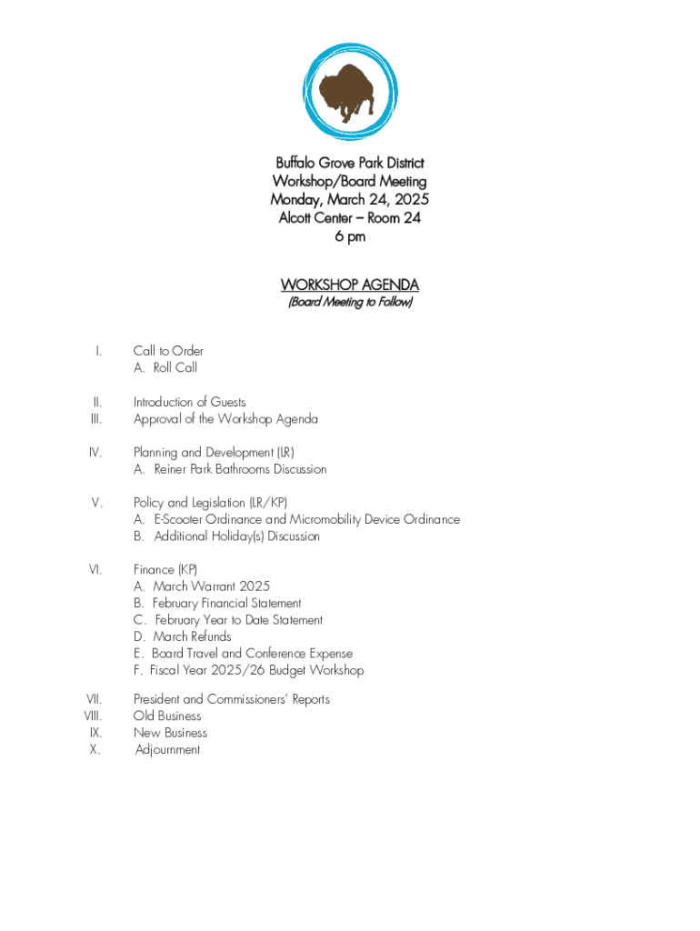 Get the free Buffalo Grove Park District Workshop/board Meeting Agenda