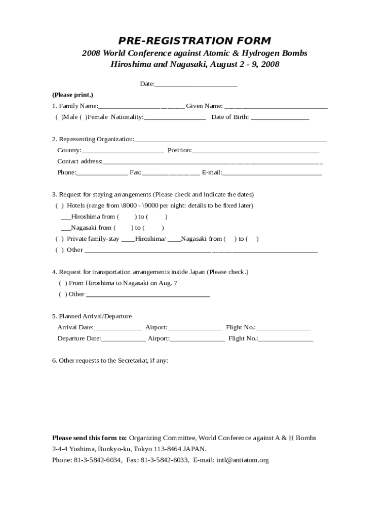 Pre-registration forms are essential tools used typically in events to gather participant information before the actual date. By filling out this form, potential attendees confirm their interest and secure their place at the event. This proactive approach allows organizers to gauge attendance and plan accordingly.