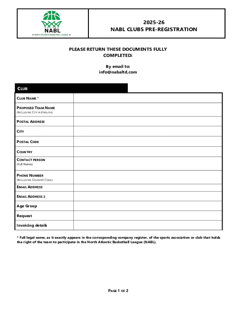 Step-by-step guide to filling out the NABL Clubs Pre-Registration Form using pdfFiller