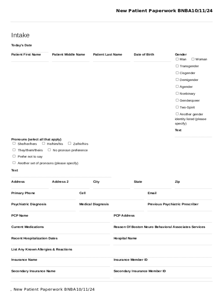 New patient paperwork bnba101124 refers to the specific forms and documentation that new patients must complete when registering at a healthcare facility or practice.