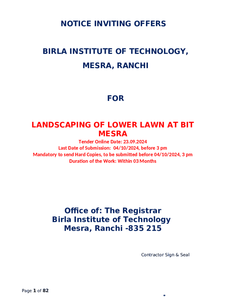 The Notice Inviting Offers is a fillable form in MS Word extension which can be completed and signed for certain needs. In that case, it is provided to the relevant addressee to provide specific information of certain kinds. The completion and signing is available manually in hard copy or using an appropriate service e. g. PDFfiller. Such applications help to submit any PDF or Word file without printing out. While doing that, you can edit its appearance for the needs you have and put a legal e-signature. Once done, you send the Notice Inviting Offers to the respective recipient or several of them by email or fax. PDFfiller has got a feature and options that make your template printable. It has a variety of options when printing out appearance. It does no matter how you'll distribute a document - physically or by email - it will always look professional and organized. In order not to create a new document from the beginning again and again, turn the original Word file into a template. After that, you will have a rewritable sample.