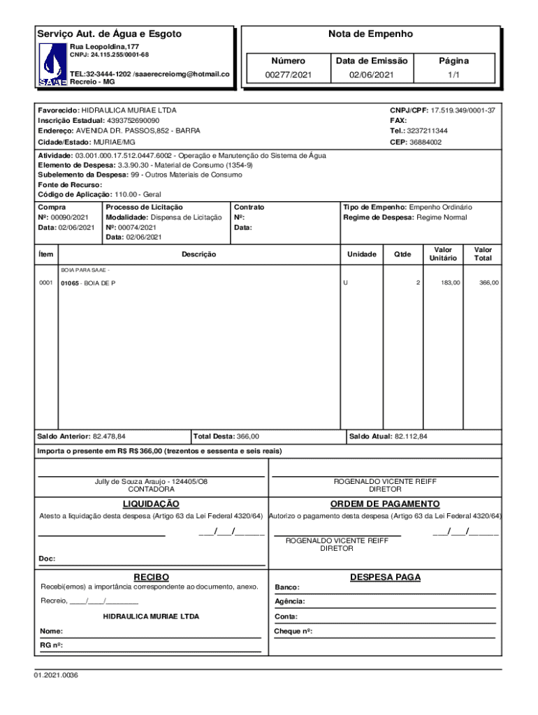 Obtenha o gratuito Nota De Empenho