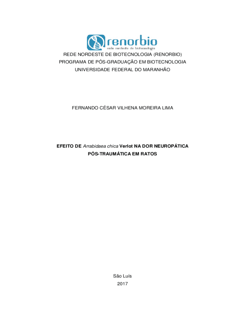 Obtenha o gratuito Efeito De Arrabidaea Chica Verlot Na Dor NeuropÁtica PÓs-traumÁtica Em Ratos