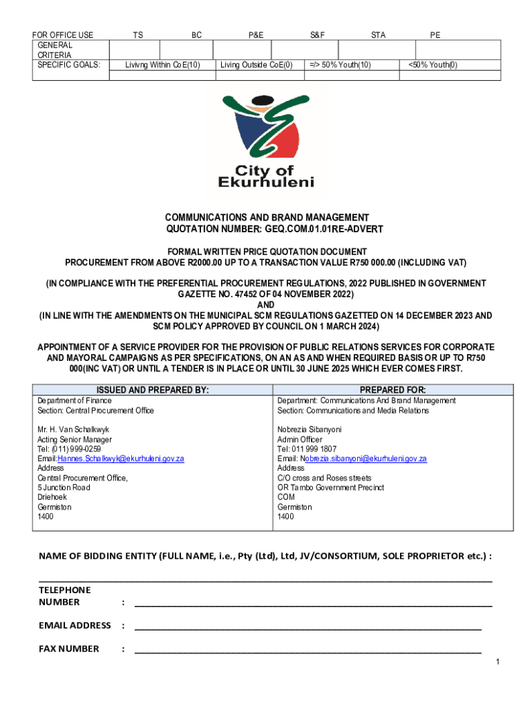 Fill out your quotation number geqcom0101re-advert online with pdfFiller!
