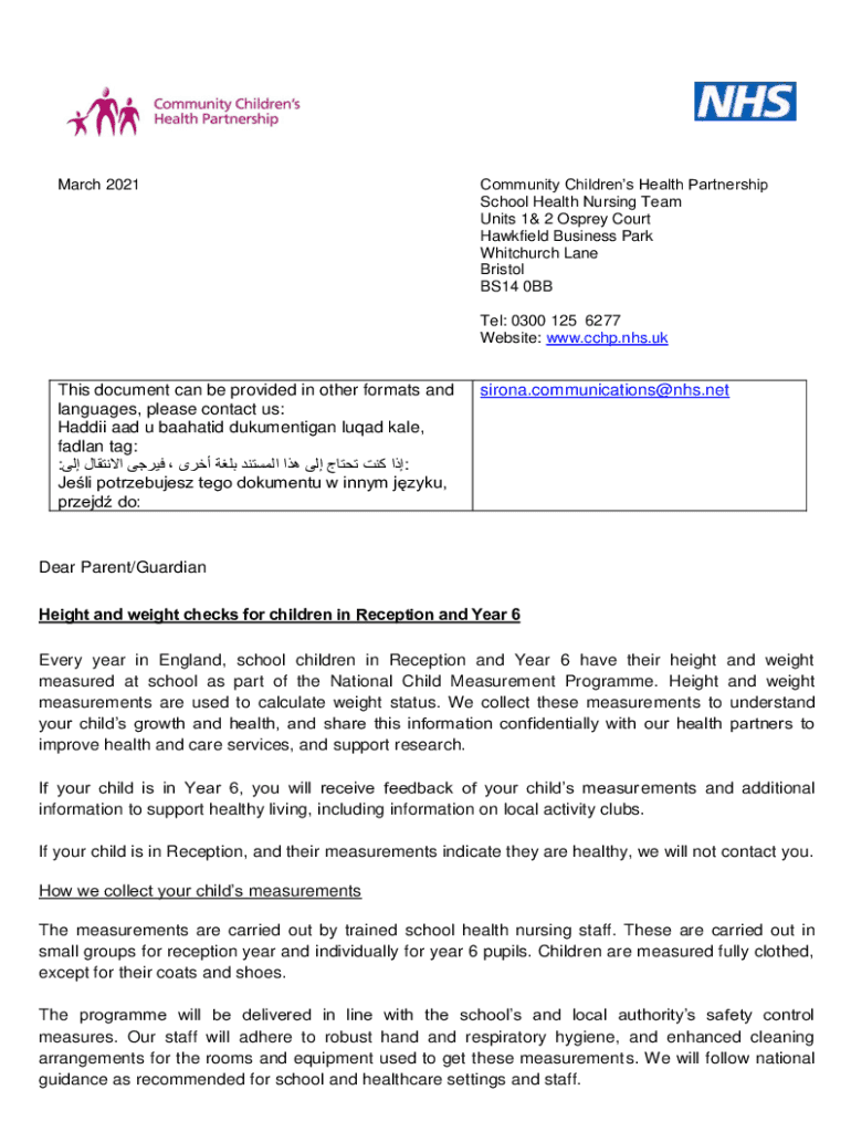 Get the free National Child Measurement Programme: information for ...