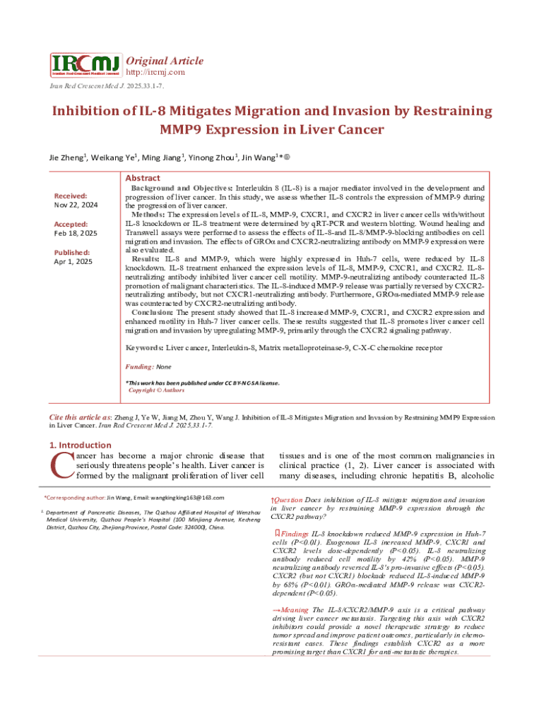 Get the free Inhibition of Il‐8 Mitigates Migration and Invasion by Restraining Mmp9 Expression i...