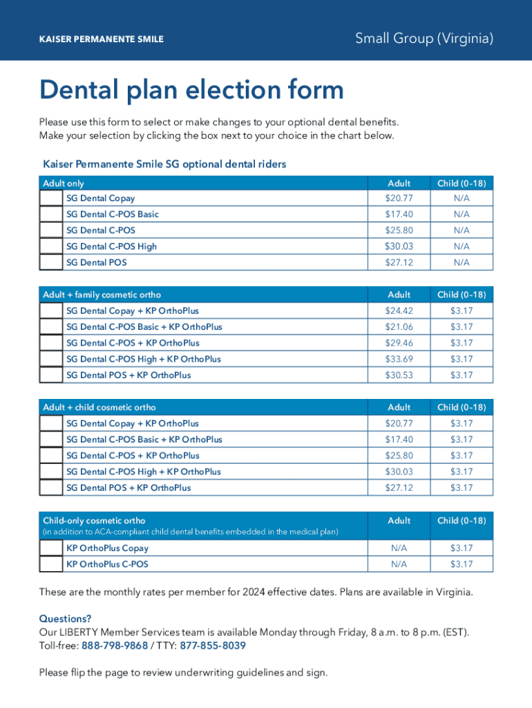 Step-by-step instructions for filling out the Kaiser Permanente Smile Form