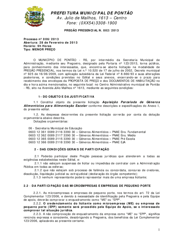 Obtenha o gratuito PregÃo Presencial N. 002/2013