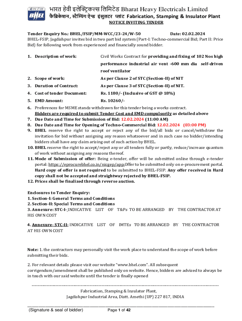 BHEL employs different types of tender document forms to cater to various procurement scenarios. Understanding these types is essential for vendors to prepare appropriate submissions.