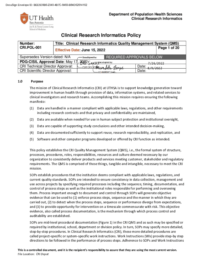 Get the free Clinical Research Informatics Quality Management System (qms)