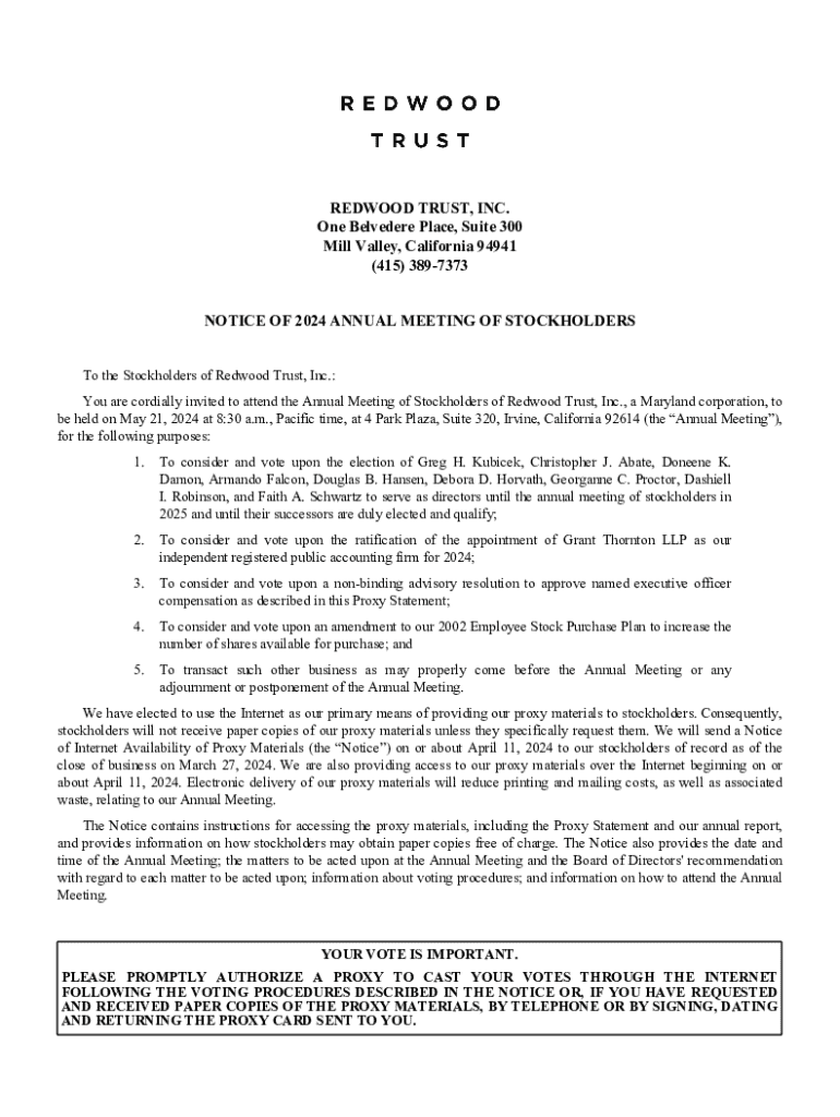 Get the free Notice of 2024 Annual Meeting of Stockholders