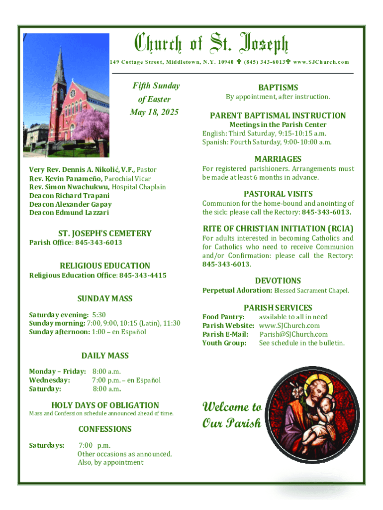 In addition to the Church of St Joseph Form, various other forms are essential for enhancing parish involvement. Registration forms for events, volunteer sign-up forms, and even feedback forms contribute greatly to active community engagement within the church.