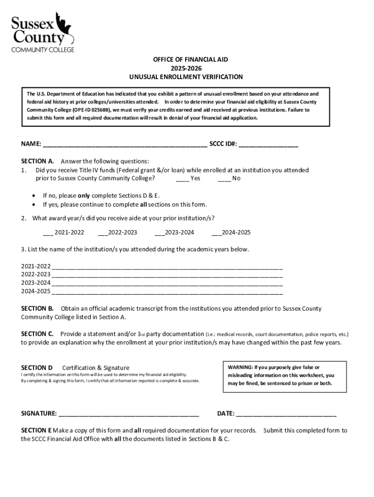 By understanding the Unusual Enrollment Verification Form and navigating its requirements, students can take significant steps toward regaining their financial aid eligibility, ensuring they are well-equipped to continue their educational journeys.