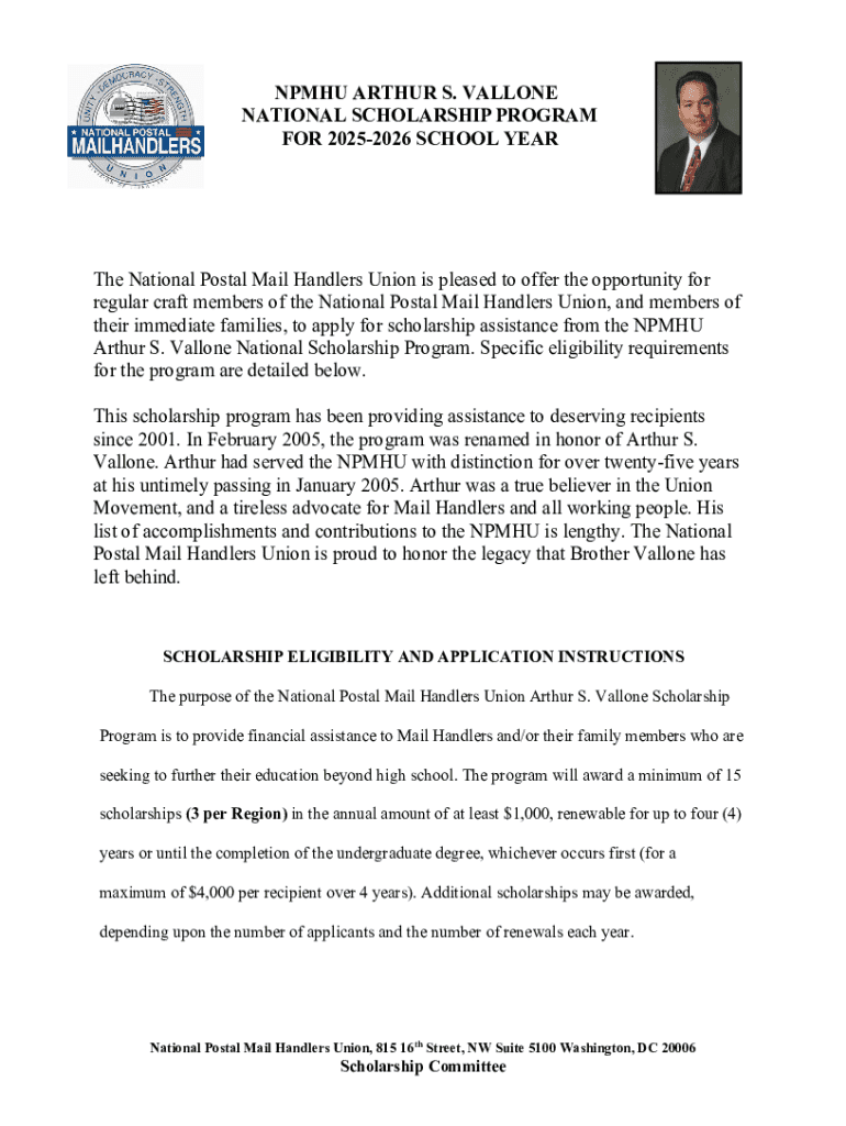 Get the free Npmhu Arthur S. Vallone National Scholarship Program