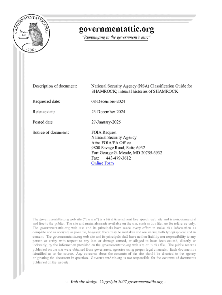 Get the free National Security Agency (nsa) Classification Guide for Shamrock
