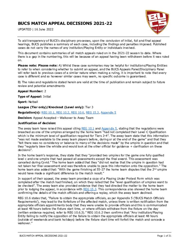 Bucs match appeal decisions form: A comprehensive guide