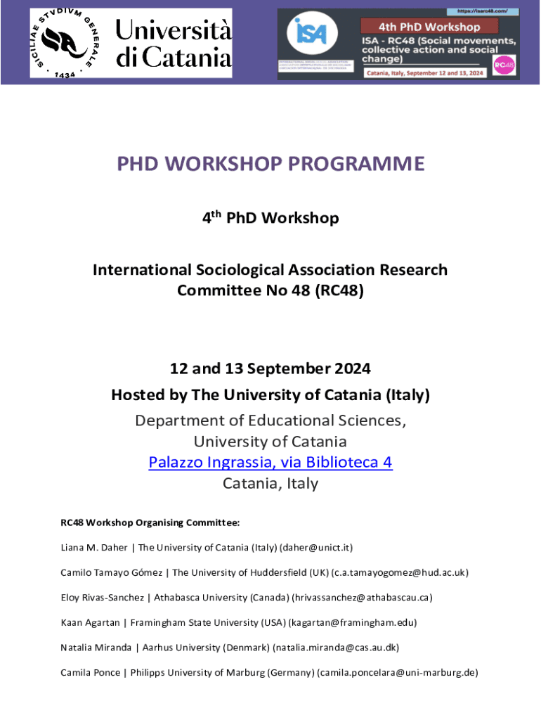 Get the free Phd Workshop Programme