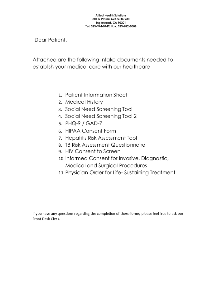 After submitting your allied health solutions intake form, it is essential to understand the next steps. Healthcare providers typically review the form and prepare for your upcoming appointment, ensuring they are informed about your health history and needs.