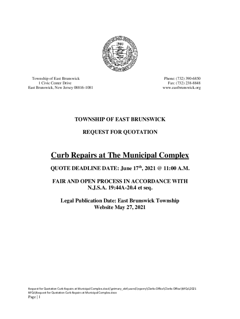Get the free Request for Quotation Curb Repairs at Municipal Complex