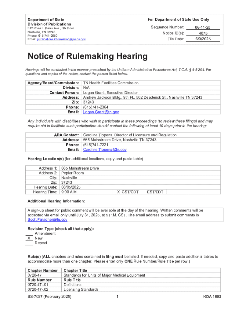 Step-by-step guide to completing the notice of rulemaking hearing form