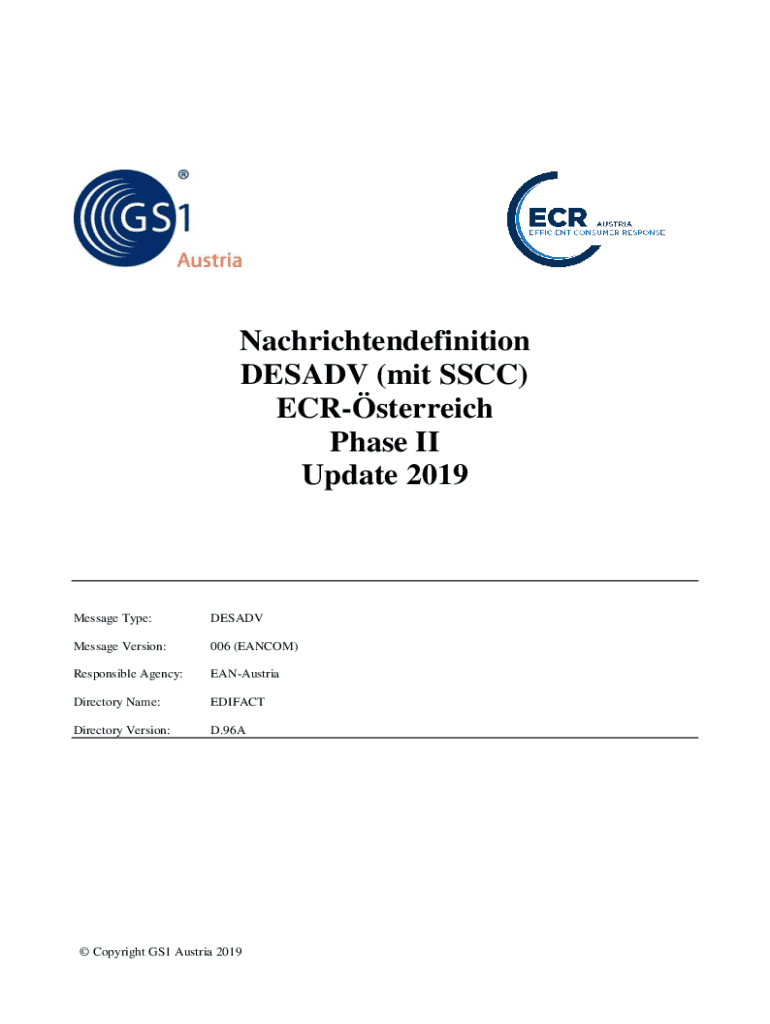 Holen Sie sich kostenlos Nachrichtendefinition Desadv (mit Sscc) Ecr-Österreich Phase Ii Update 2019