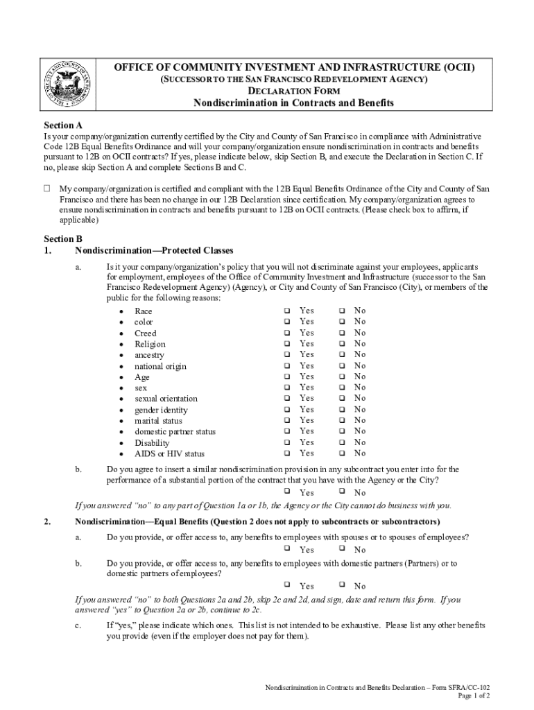 Get the free Nondiscrimination in Contracts and Benefits Declaration