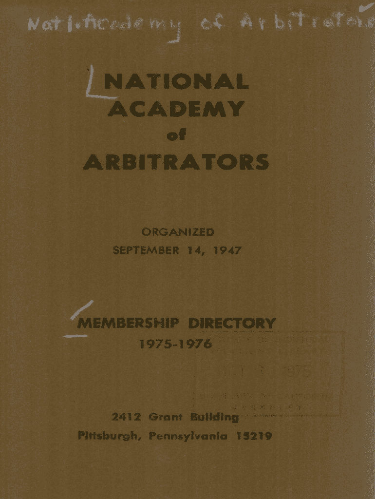 Get the free National Academy of Arbitrators Membership Directory