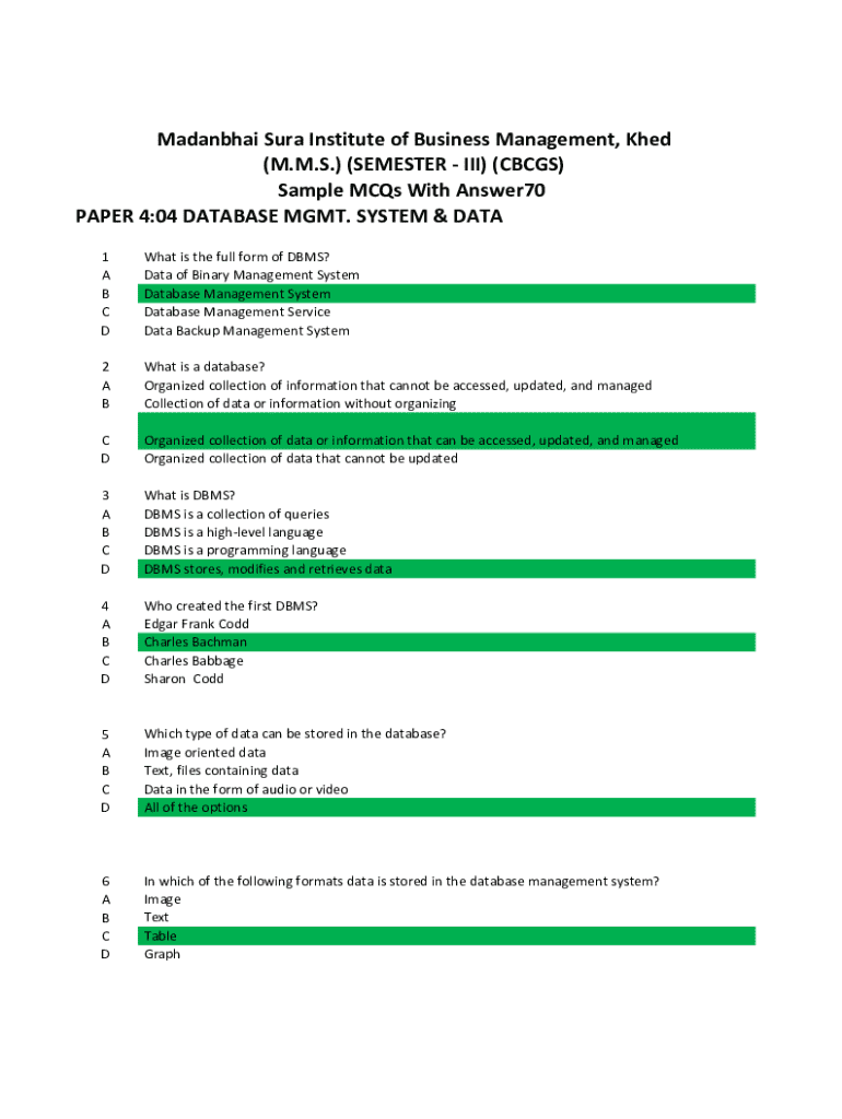 Get the free Database Management System: Multiple Choice Questions ...