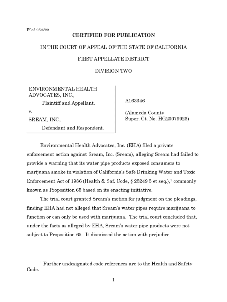 Get the free Environmental Health Advocates, Inc. V. Sream, Inc.