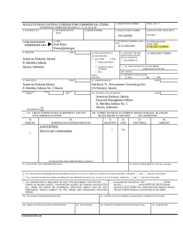 Filling out the Solicitation/Contract/Order for Commercial Items Form requires attention to detail. Here’s a step-by-step guide to help you through the process.