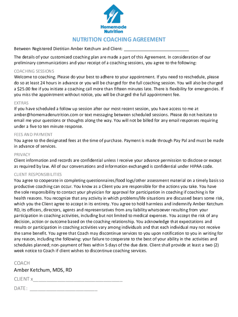 Mutually agreed-upon payment terms are essential in a nutrition coaching agreement. This section outlines the cost of services, acceptable payment methods, and any available payment plans or refunds. Clarity in this area minimizes future disputes and ensures that both parties are financially committed.
