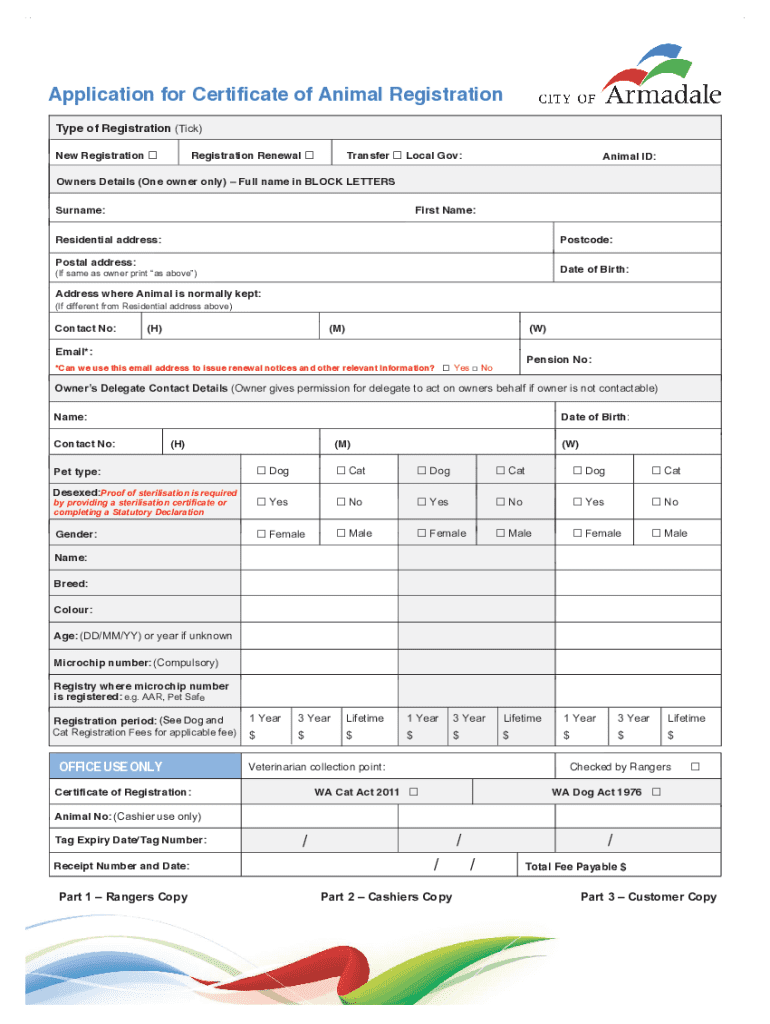 Get the free Application for Certificate of Animal Registration