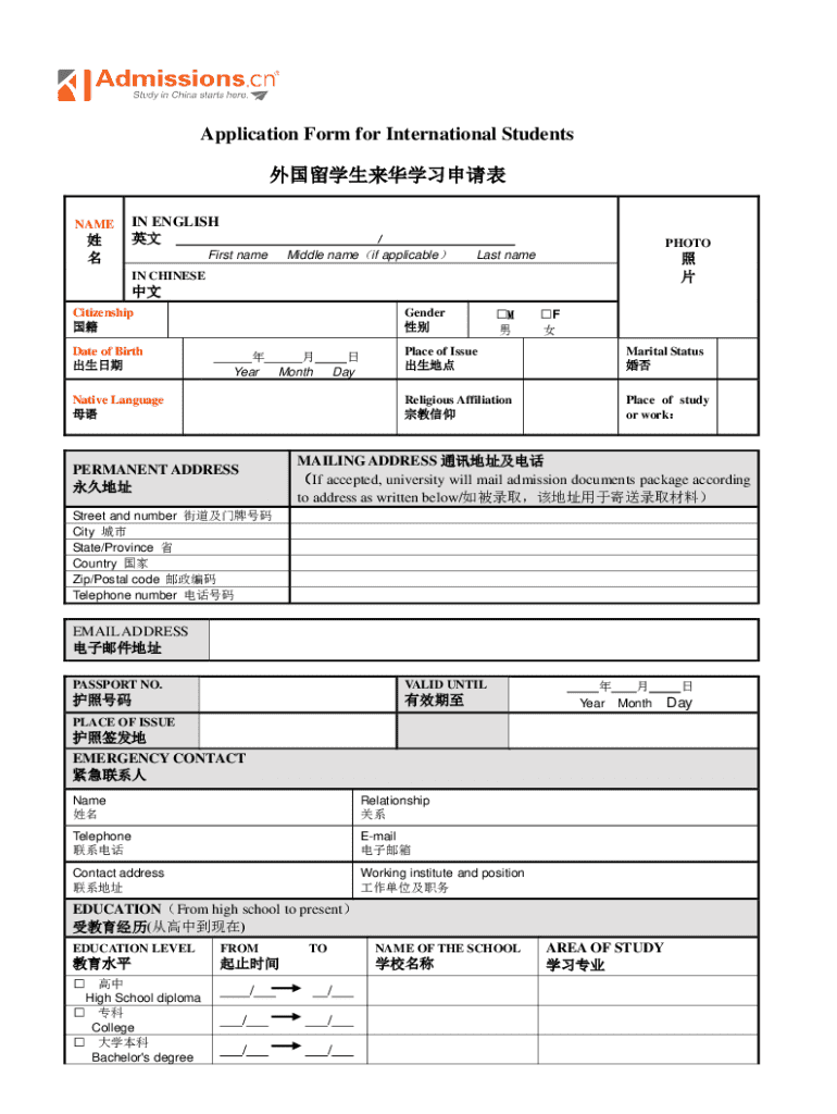 The importance of the international application form cannot be overstated in the context of studying abroad. It not only helps institutions in the selection process but also ensures that applicants provide comprehensive data, which aids in assessing their suitability for specific programs. Moreover, it sets the stage for subsequent communications regarding admissions, scholarships, and campus facilities.