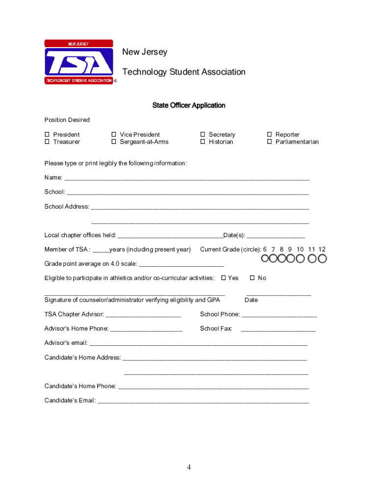 Get the free New Jersey Technology Student Association State Officer Nomination Packet