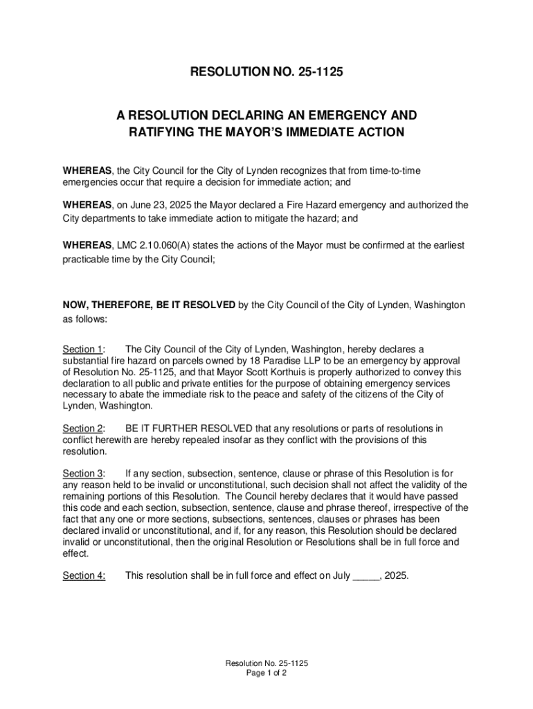 Common mistakes can occur when filling out resolutions, often revolving around incomplete fields or unclear language. To troubleshoot such issues, it's important to thoroughly review the form before finalization to catch any discrepancies or omissions. In case of an incomplete resolution, revisiting the necessary documents and ensuring that all required signatures are obtained can remedy the situation.