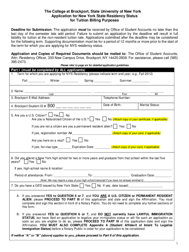 Get the free Application for New York State Residency Status for Tuition Billing Purposes