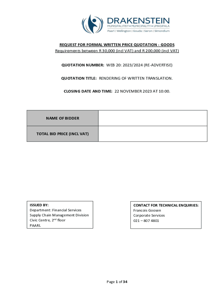 Get the free Request for Formal Written Price Quotation - Goods